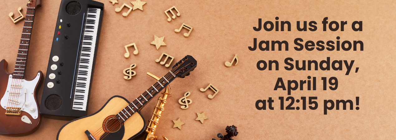 Do you play an instrument or sing? Come join us at our Open Jam Session April 19th at 12:15 pm in the Spirit Center. Contact Max Mason, Praise Band Leader, for more information!