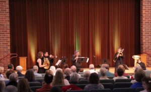 To the delight of the 160 people attending, the Monumental Brass Quintet concert kicked off Glen Mar’s 2024 Summer Concert Series in the Spirit Center May 31. The performers were John Banther (tuba), Heidi Brown (horn), Gregory Freeman (trombone), guest musician Jose Oviedo (trumpet), and Patrick Whitehead (also on trumpet). These superb musicians played a variety of pieces – classical, jazz, hymns, and marches – while also presenting background information on the songs.